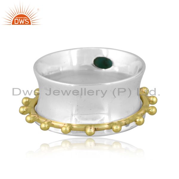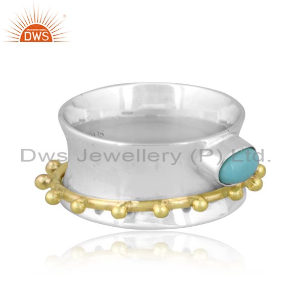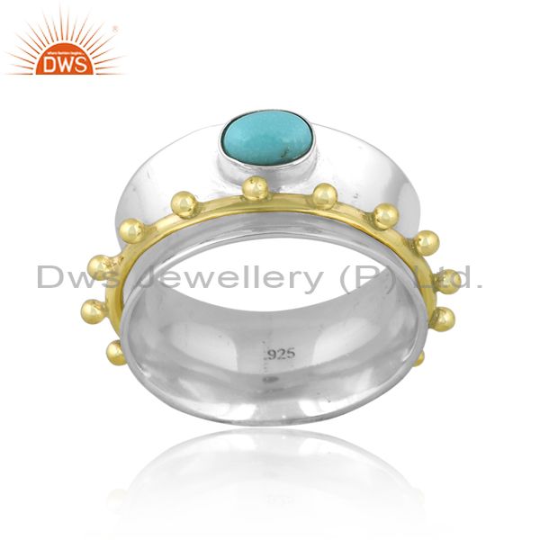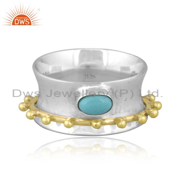 Arizona Turquoise Set Gold On Fine Sterling Silver Band Ring