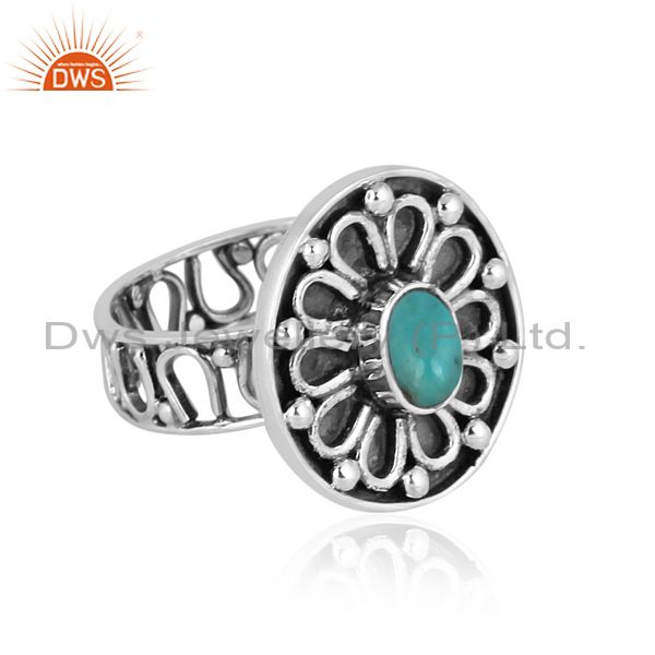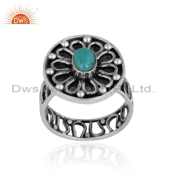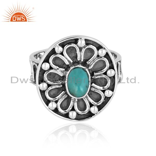Arizona Turquoise Set Oxide Silver Boho Floral Designer Ring