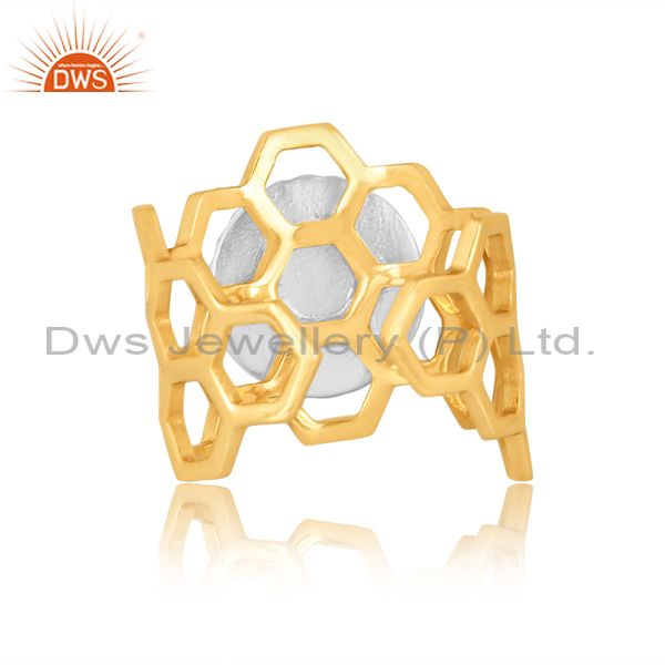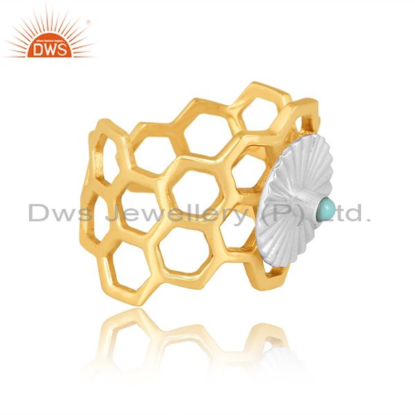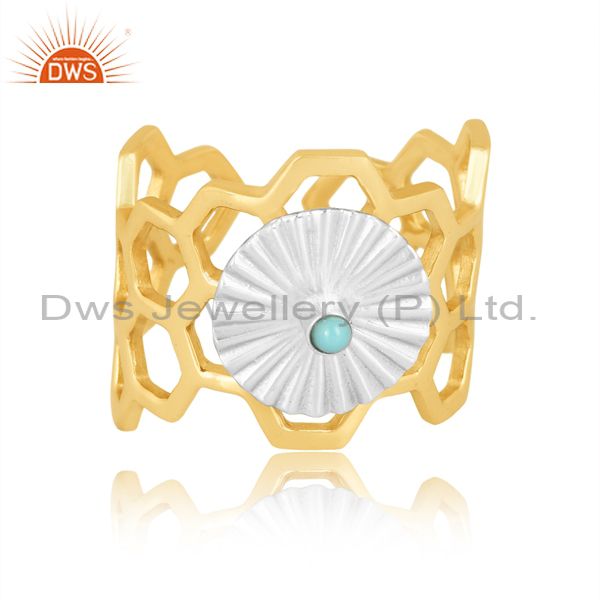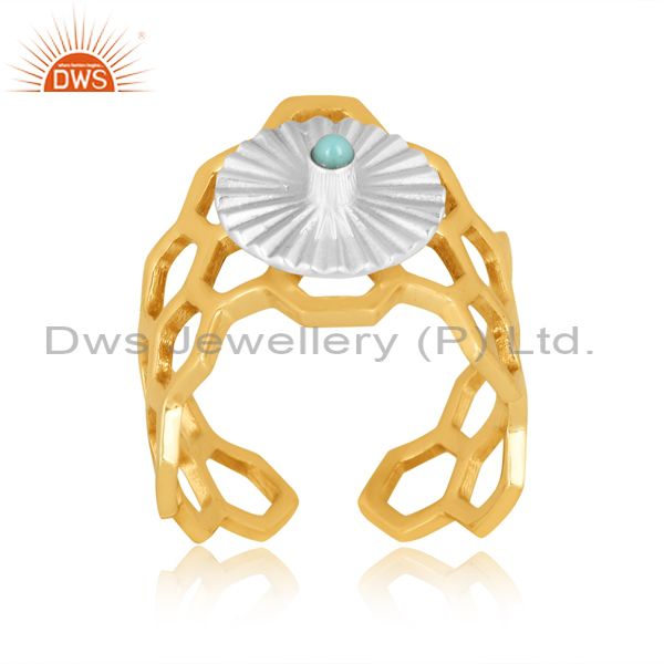 Arizona Turquoise White On Brass Gold Abstract Design Ring