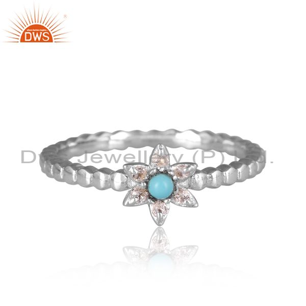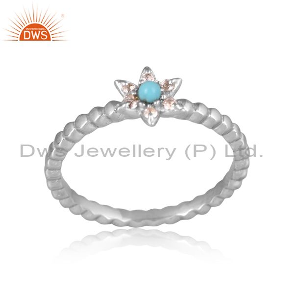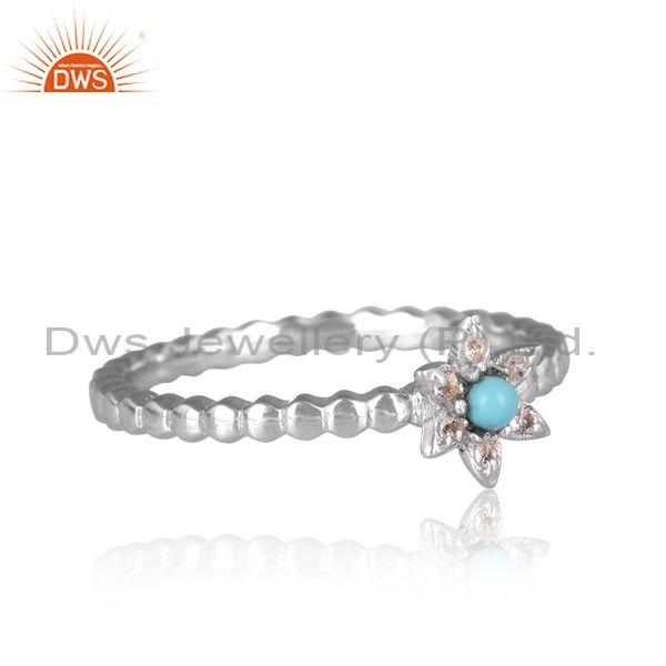 Arizona Turquoise, White Topaz On Gold Sterling Silver Ring