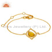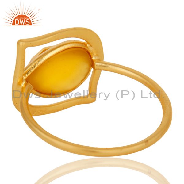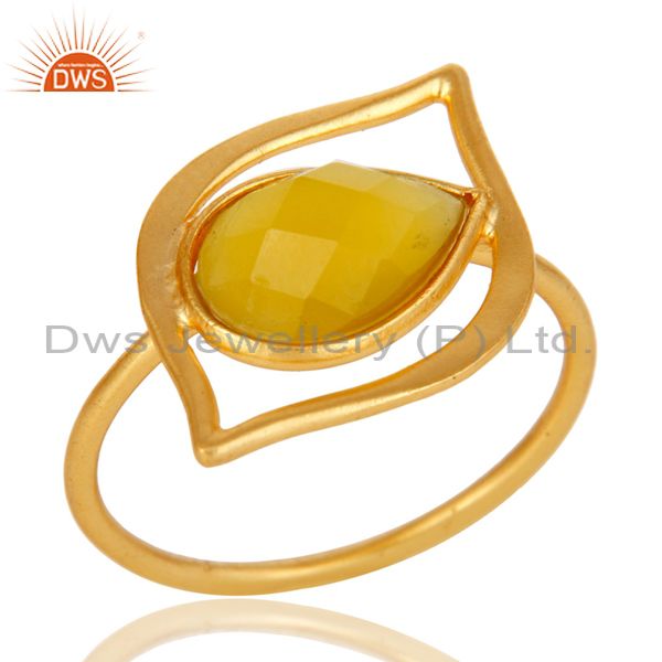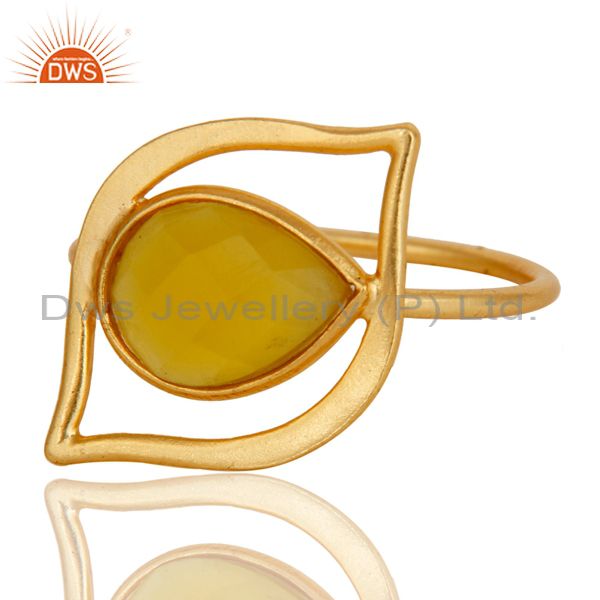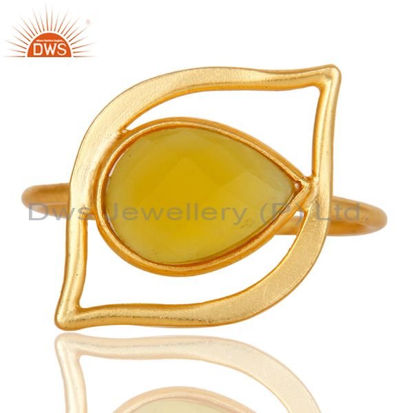 Art Deco 18K Gold Plated Sterling Silver Yellow Chalcedony Designer Ring