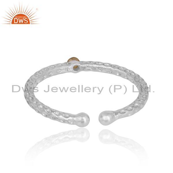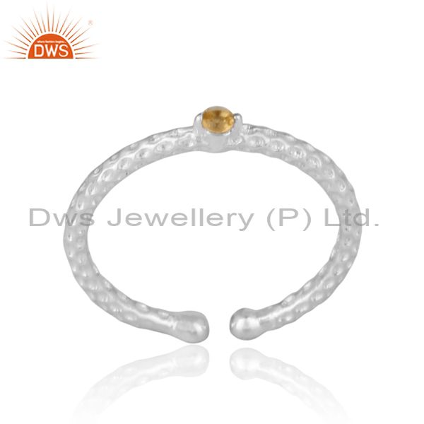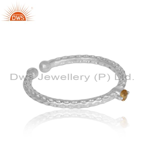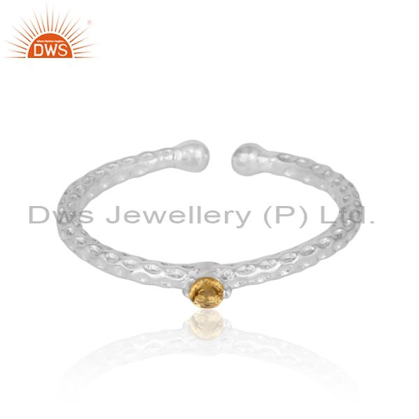 Artistic Hammer Textured Sleek Sterling Silver Ring with Citrine