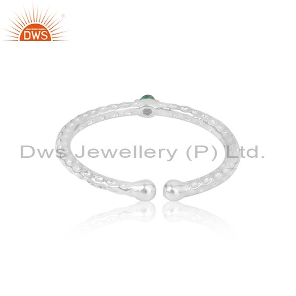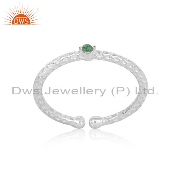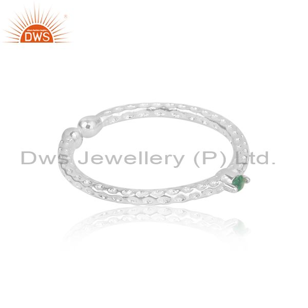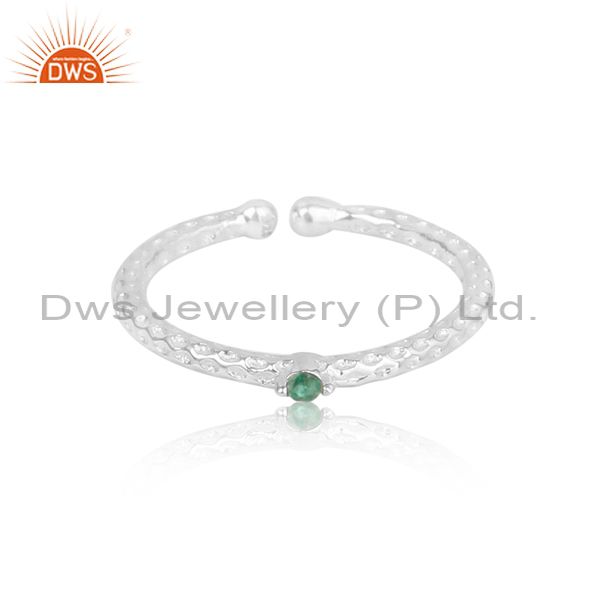 Artistic Hammer Textured Sleek Sterling Silver Ring with Emerald