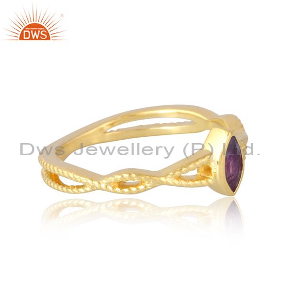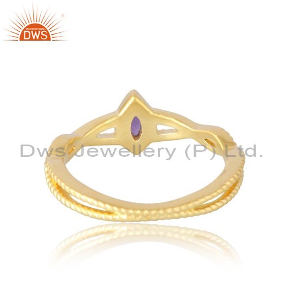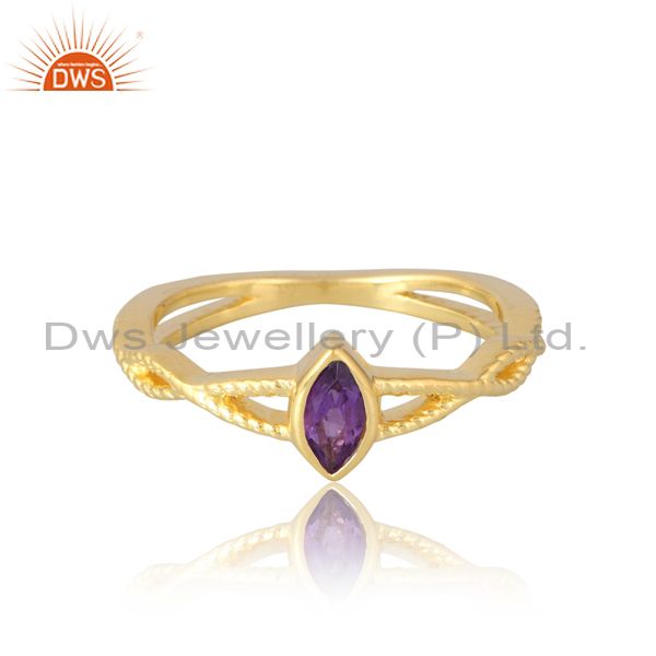 Attractive 18K Gold Silver Amethyst Cut Marquise Ring