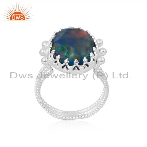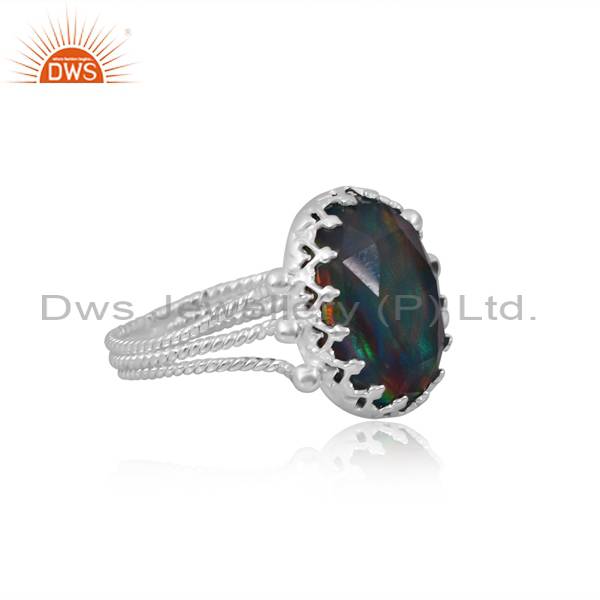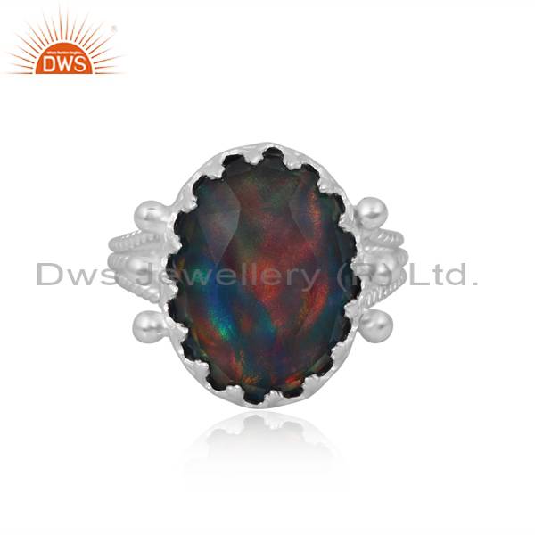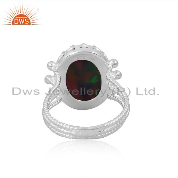 Aurora Opal & Checker Red Green Ring - Stunning Color Play!