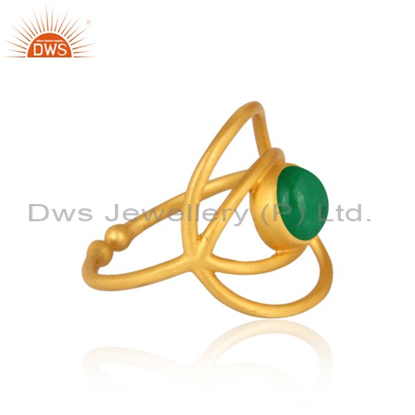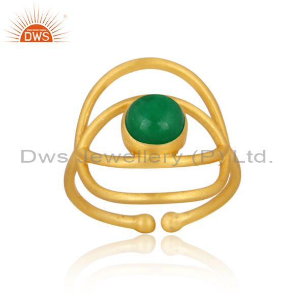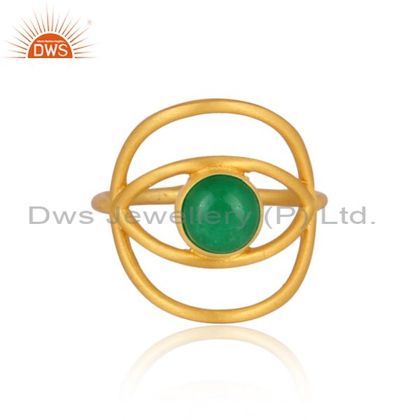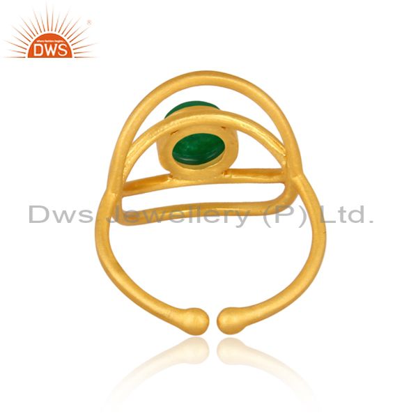 Aventurine Natural Green Quartz Gold On Silver Evil Eye Ring