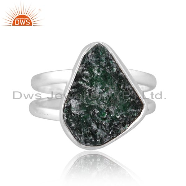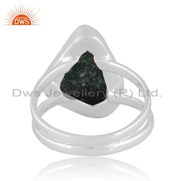 Aventurine Natural Green Quartz Set Oxidized 925 Silver Ring