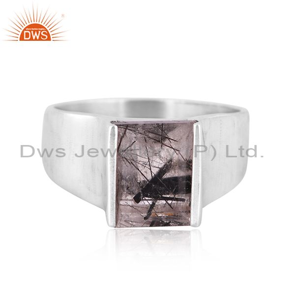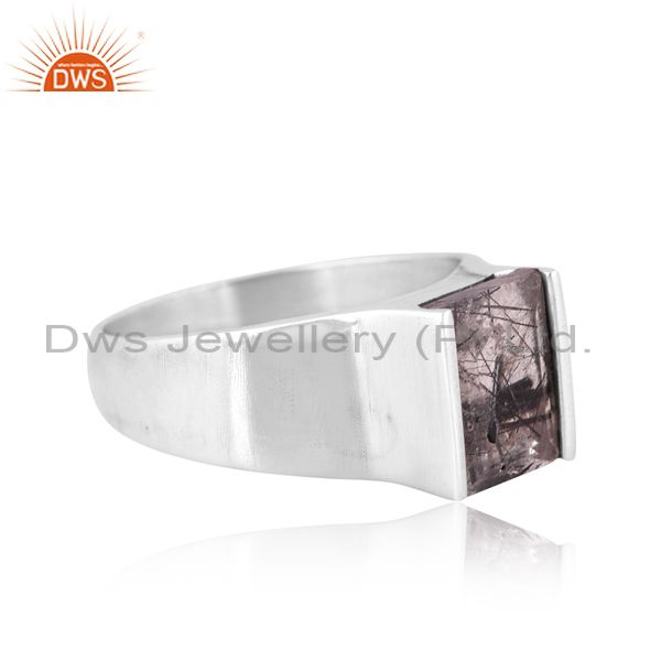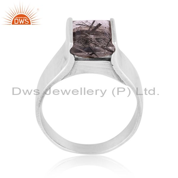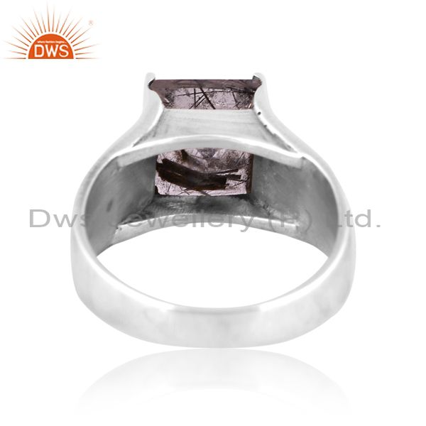 Baguette Cut Black Rutile Set Fine 925 Sterling Silver Ring