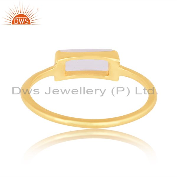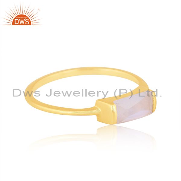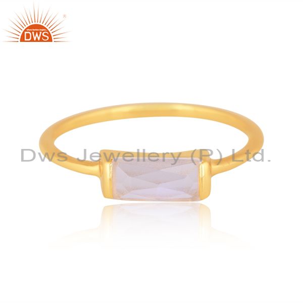 Baguette Cut Rainbow Moon Stone Set 18K Gold On Silver Ring