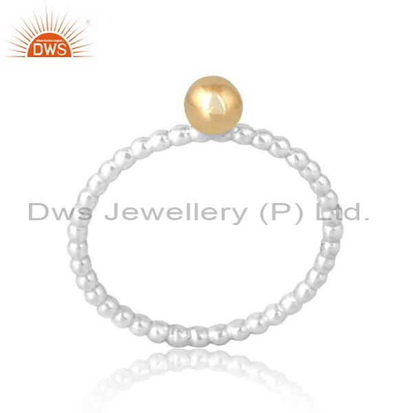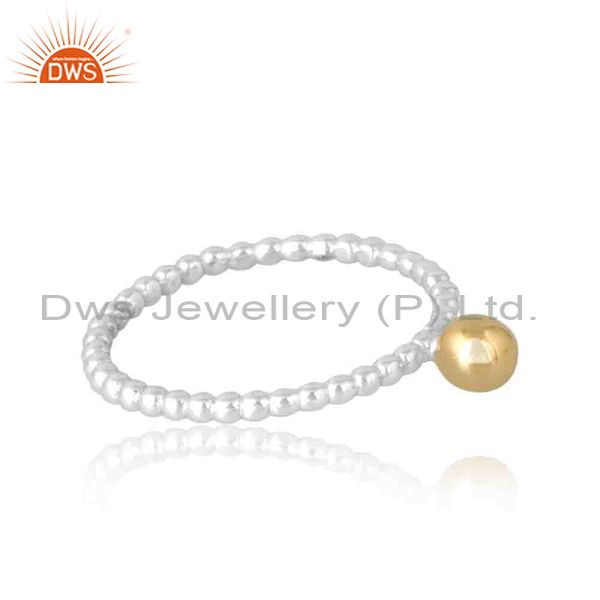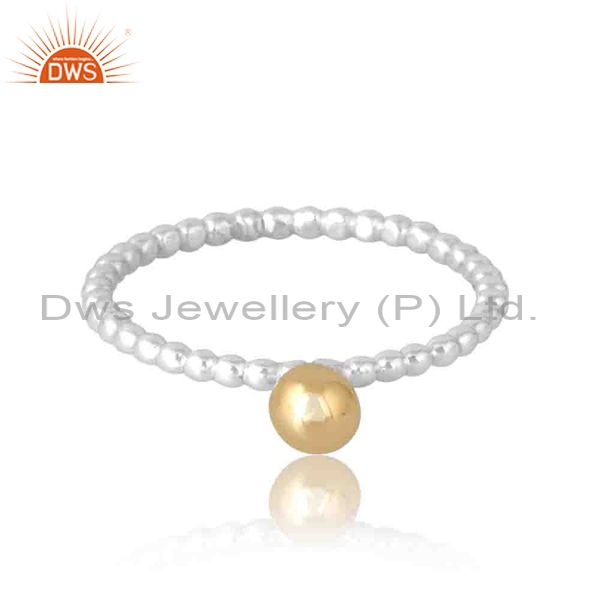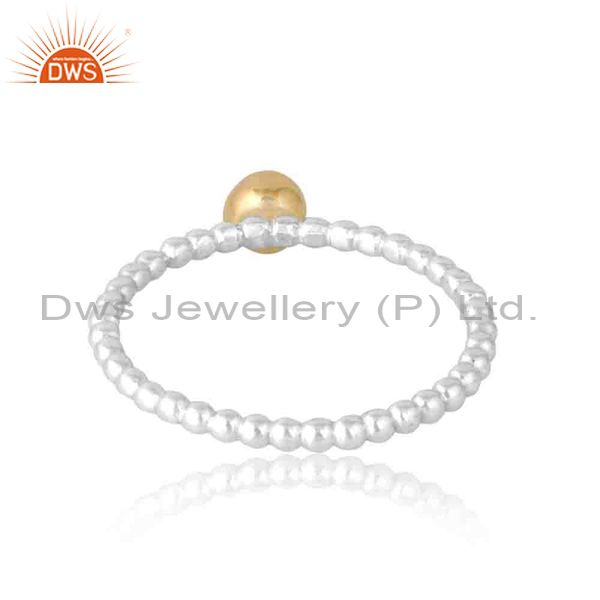 Bani Wire Pattern Full Band Silver Ring With Gold Dot Design