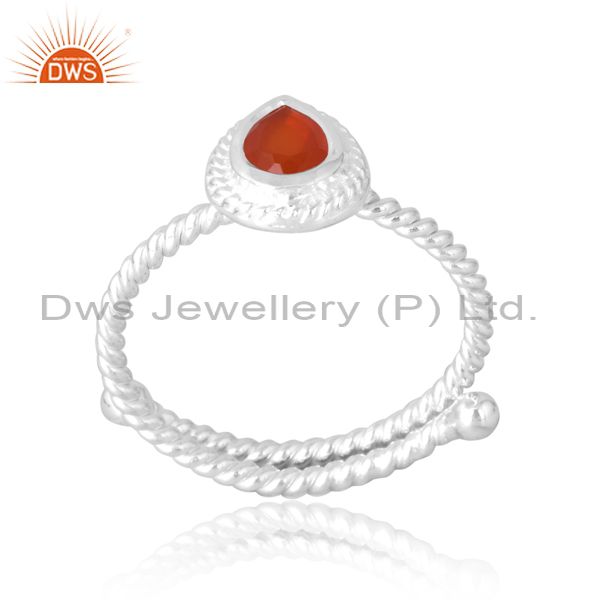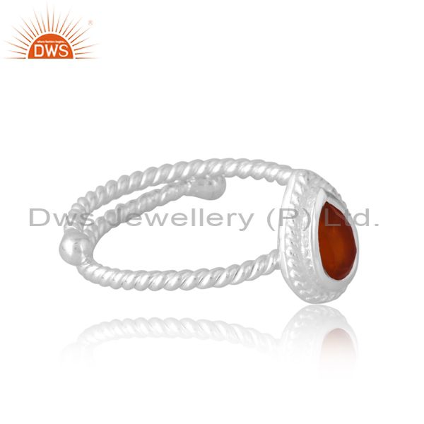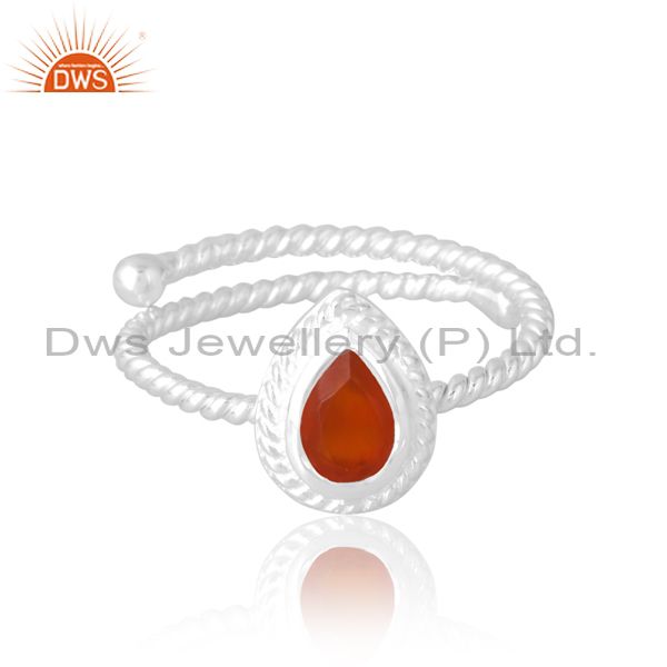 Bani Wire Thin For Women Silver Ring With Pear Carnelian