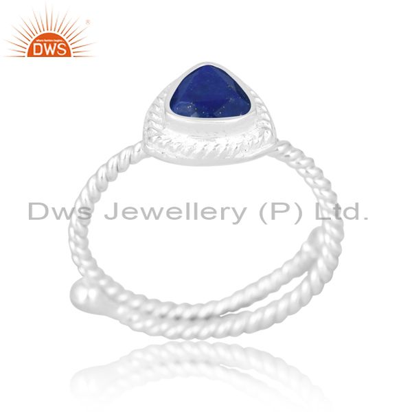 Bani Wire Thin For Women Silver Ring With Trillion Lapis