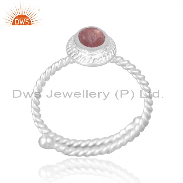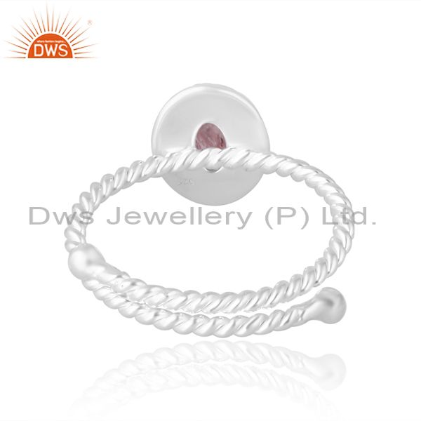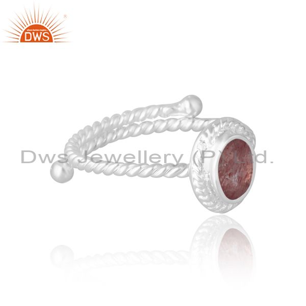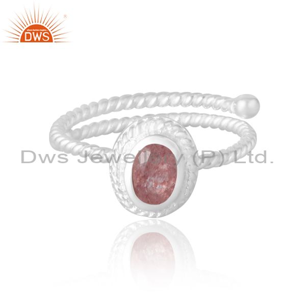 Bani Wire Thin Silver Ring With Oval Strawberry Women
