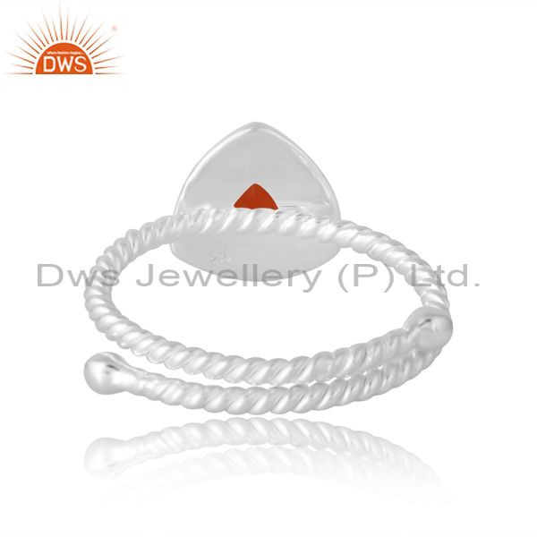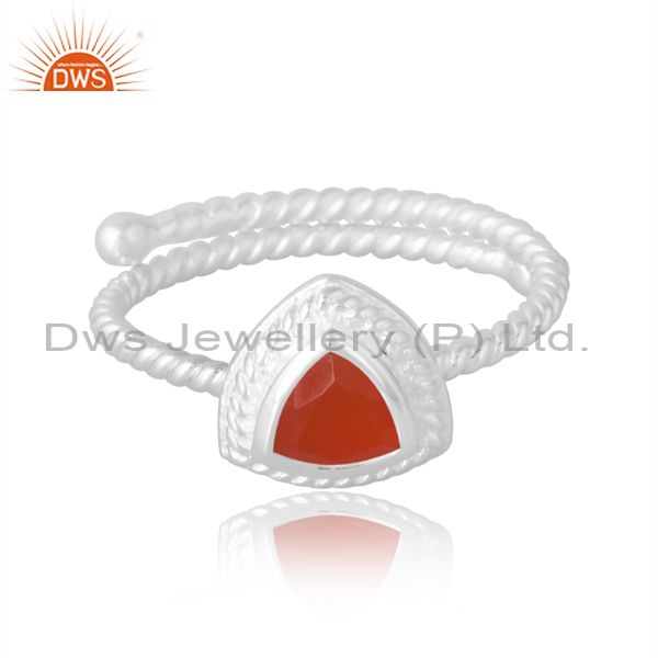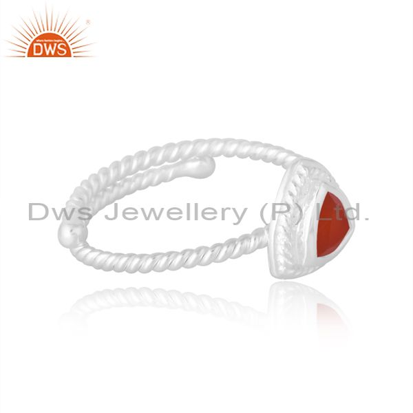Bani Wire Thin Silver Women Ring With Trillion Carnelian