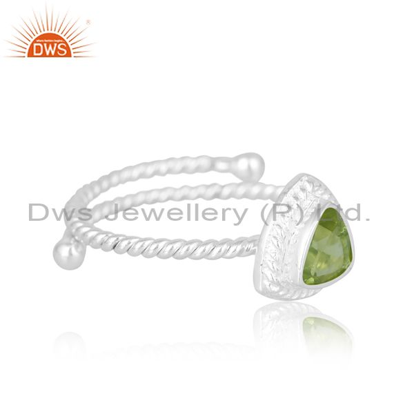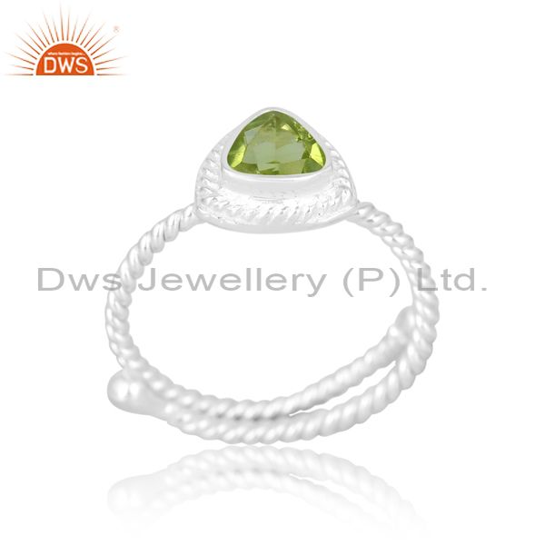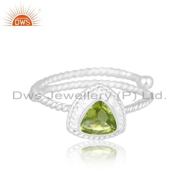 Bani Wire Thin Women Silver Ring With Trillion Peridot