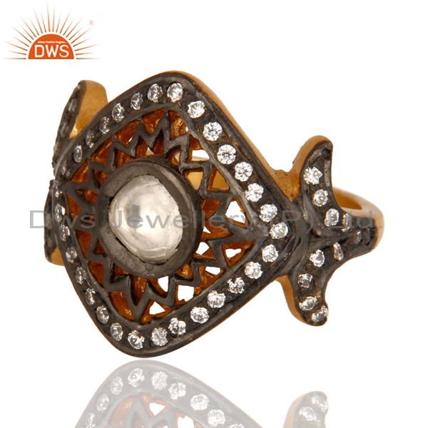 Beautiful 14K Gold Plated Sterling Silver Vintage Style Cz Designer Women Ring
