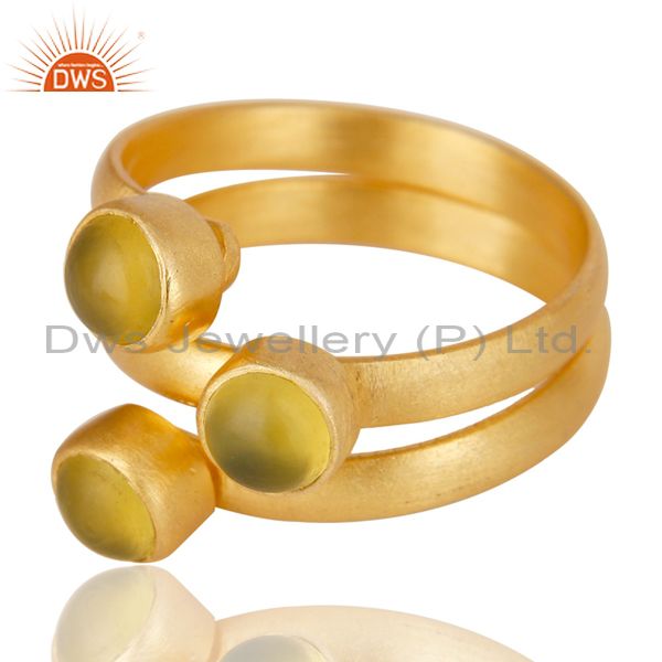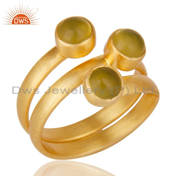 Beautiful 14K Yellow Gold Plated Handmade Dyed Chalcedony Statement Brass Ring