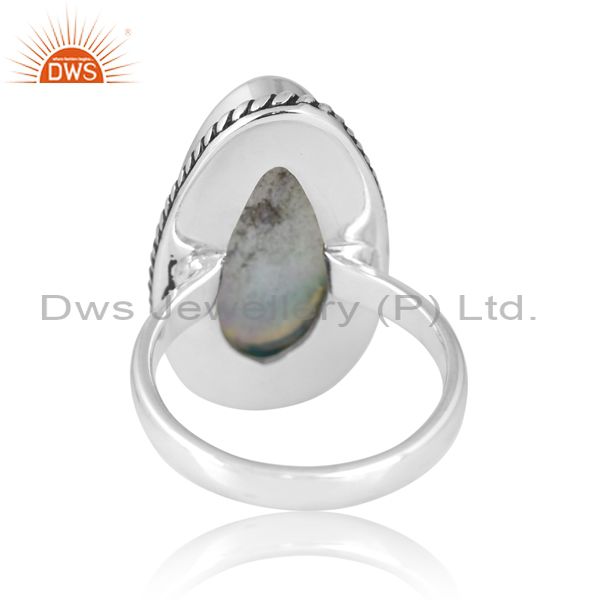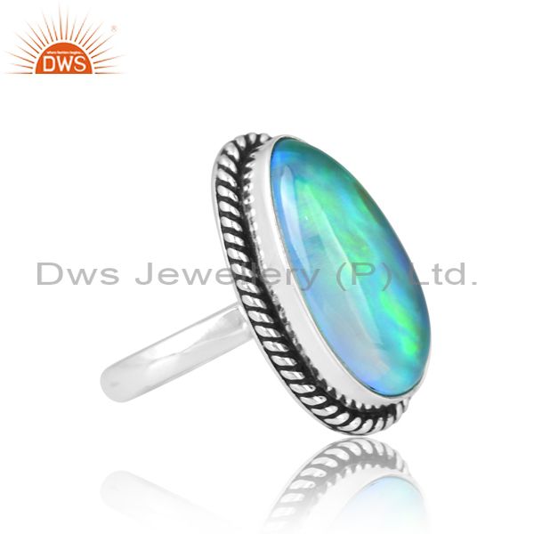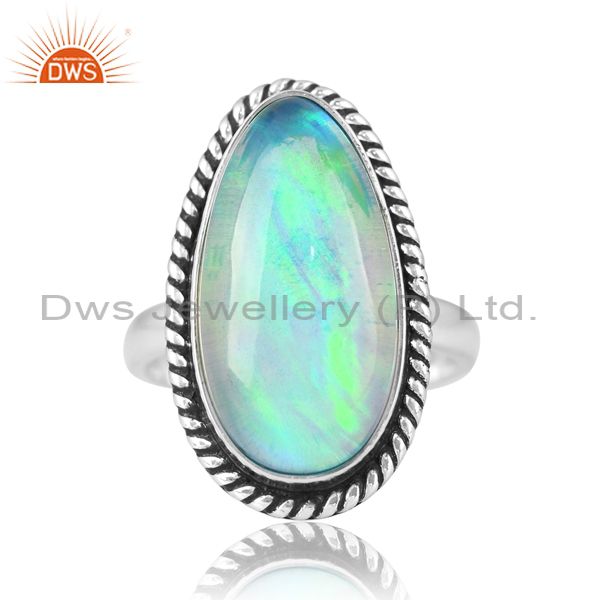 Beautiful Aurora Oval Stone Ring With Tarnished Pita Wire