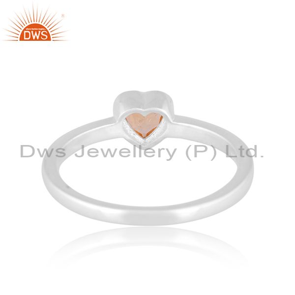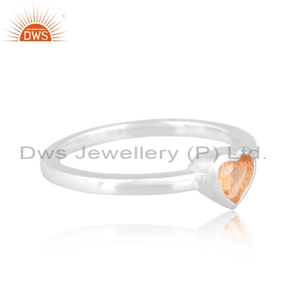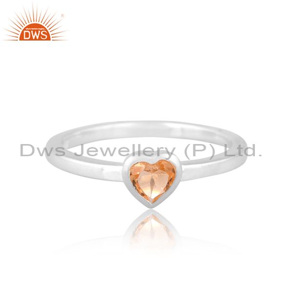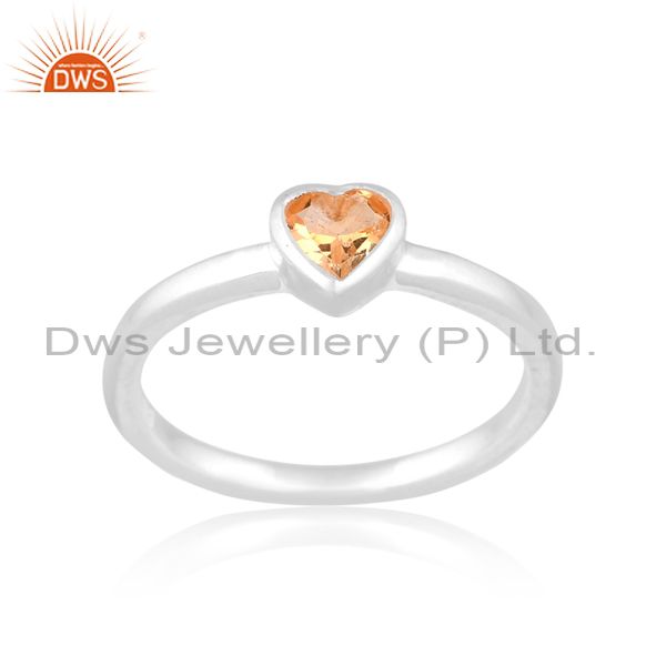 Beautiful Citrine Cut Heart On White Sterling Silver Ring