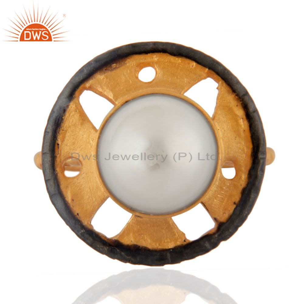 Beautiful Ethnic Hand Crafted Filigree 10Mm Round Pearl Ring Gifted Jewelry Indi