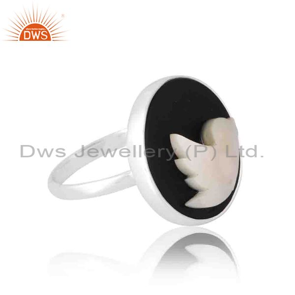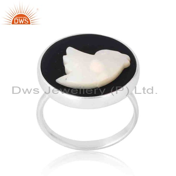 Beautiful Fly Bird Ring In Pearl Cabushion And Onyx Coin