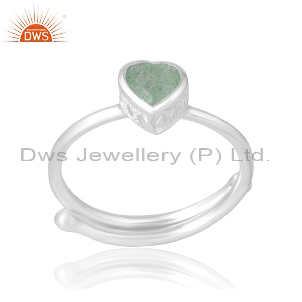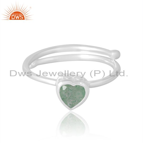 Beautiful Heart Adjustable Band In Green Strawberry Silver