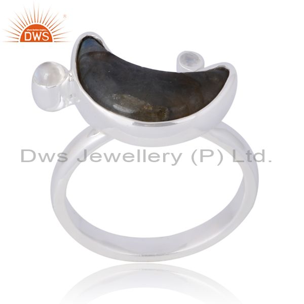 Beautiful Silver Moonstone Ring With Labradorite Special Gift