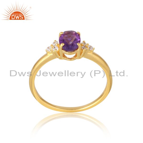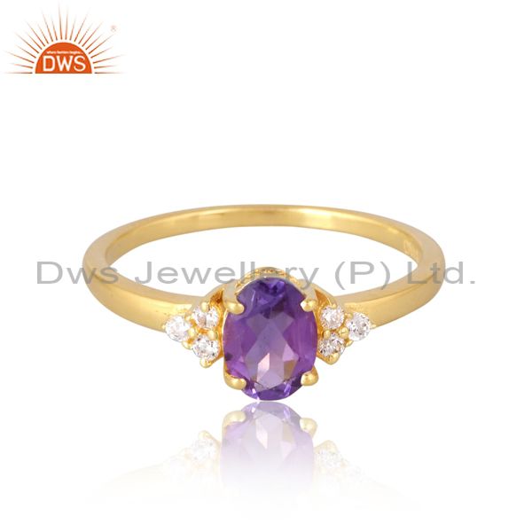 Beautiful Silver Oval Amethyst & Cubic Zirconia Ring