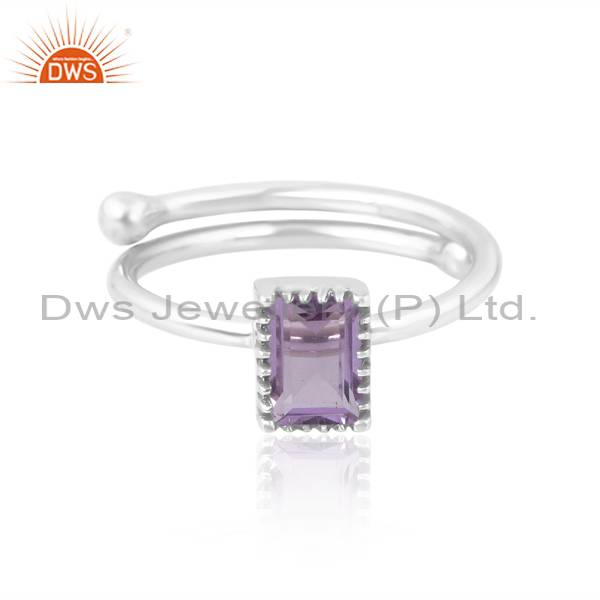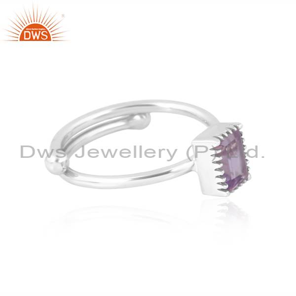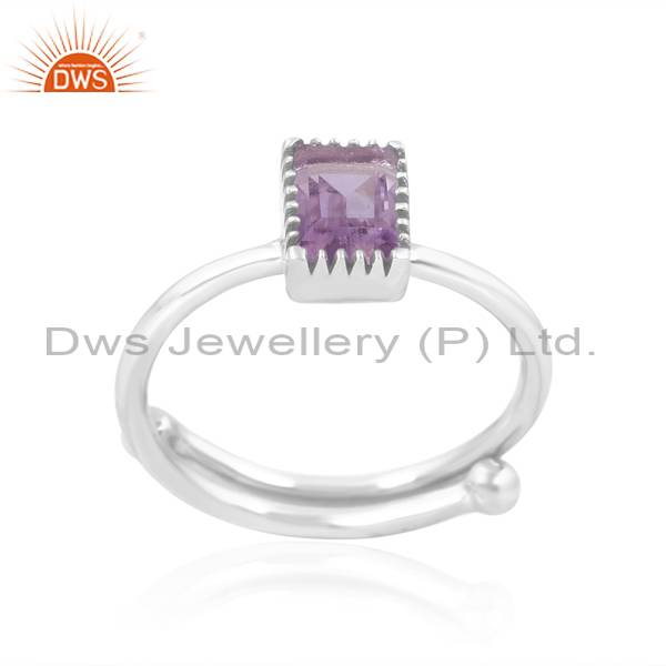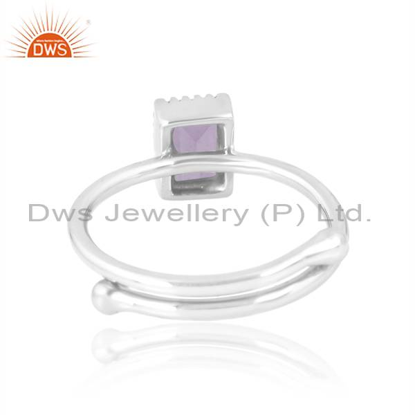 Beguette Cut Adjustable Pink Amethyst Ring For Women