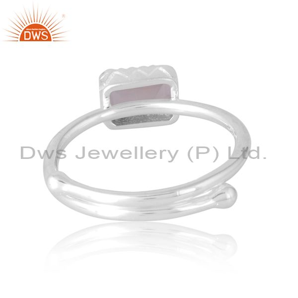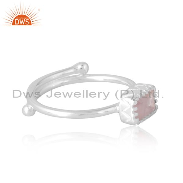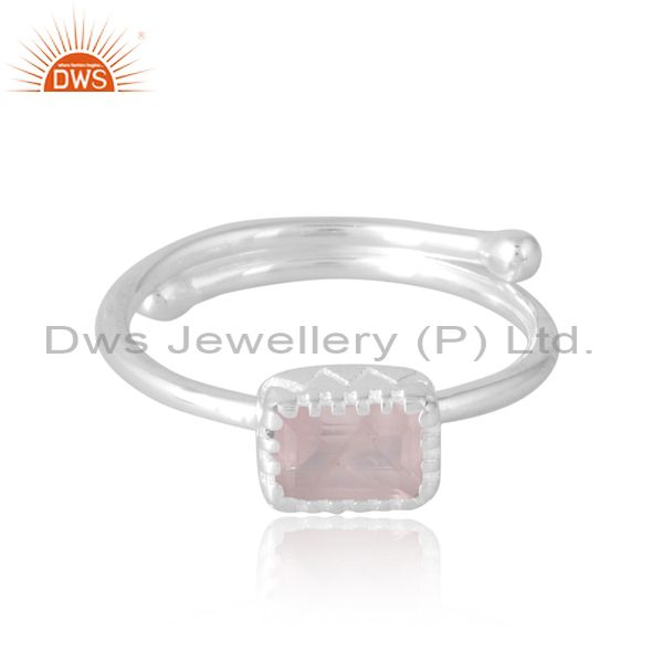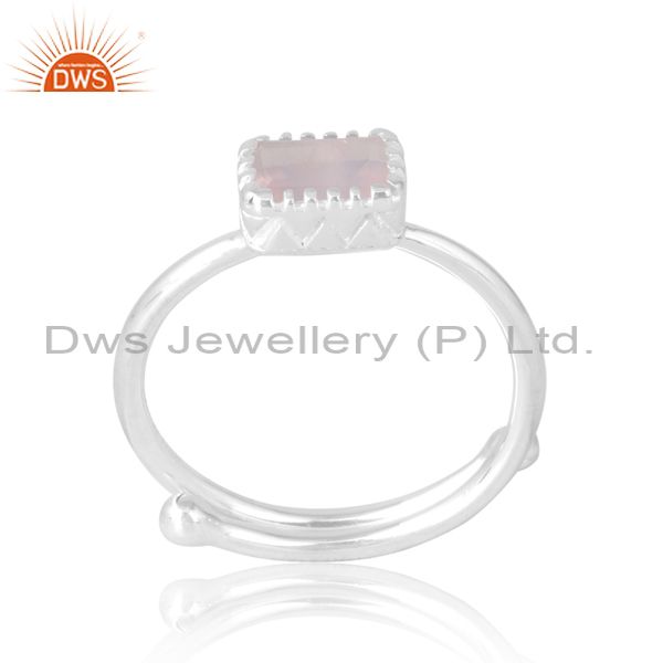 Beguette Cut Ring Unisex With Rose Quartz Adjustability