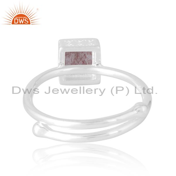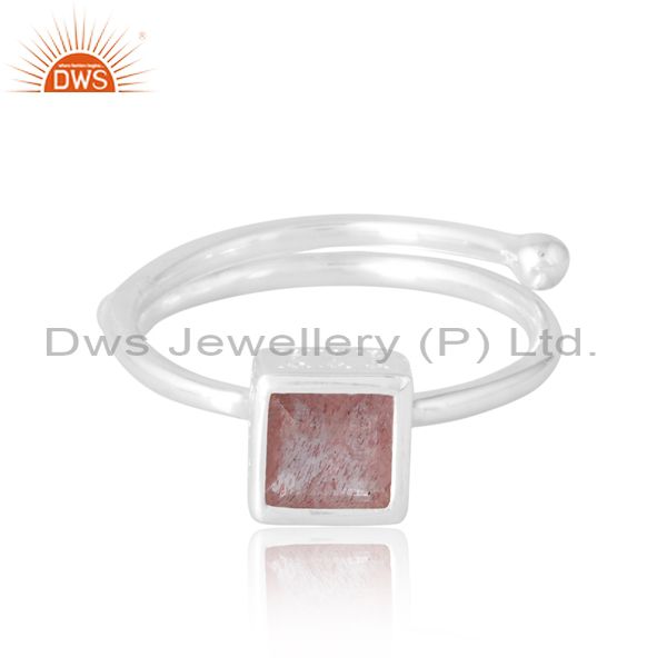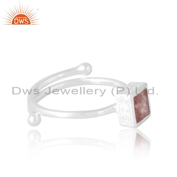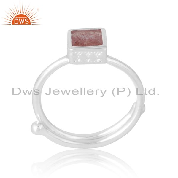 Beguette Cut Ring Unisex With Strawberry Quartz Adjustable