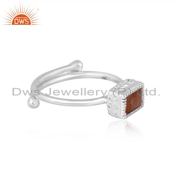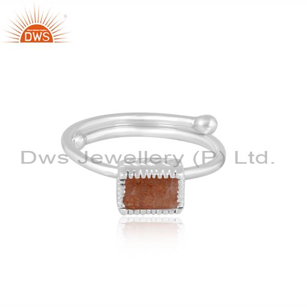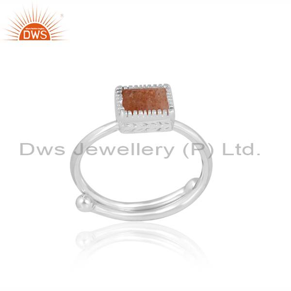 Beguette Shape Adjustable Natural Sunstone Ring For Women