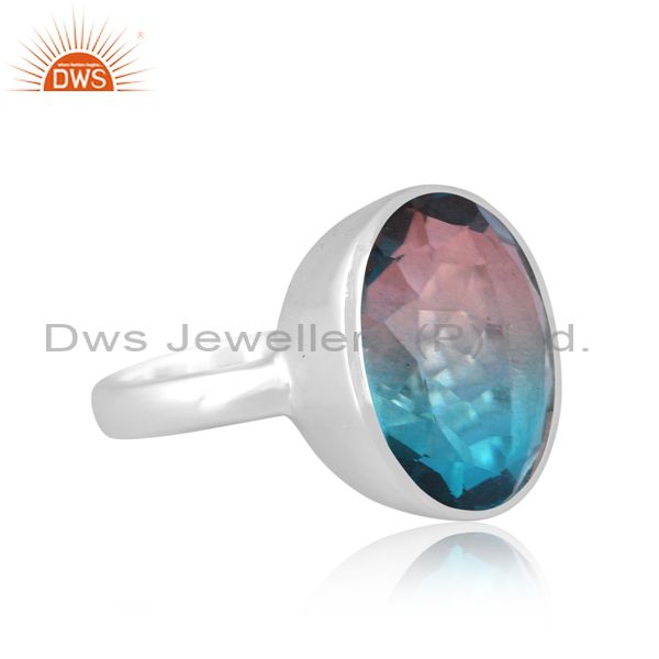 Bio Alexandrite Doublet Quartz Set Fine Silver Design Ring