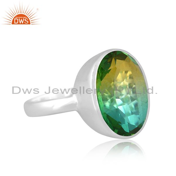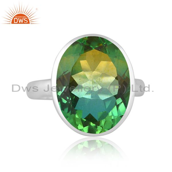 Bio Chrome Diopside Doublet Quartz Fine Silver Design Ring