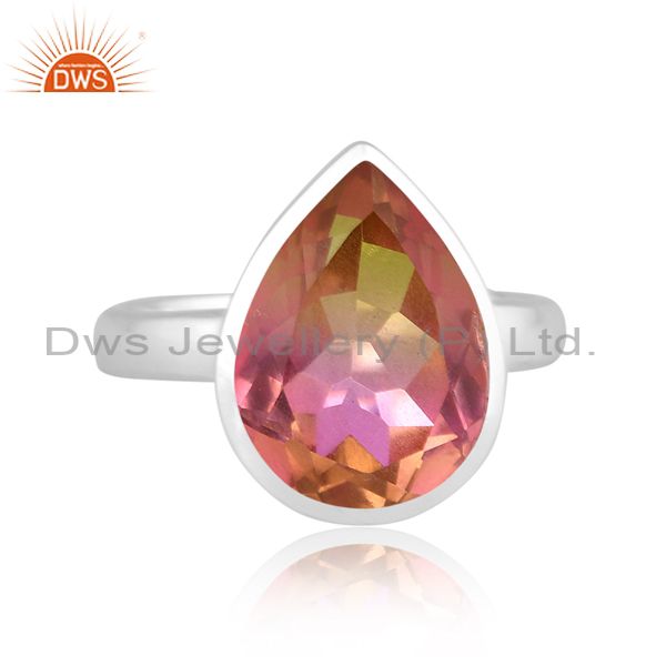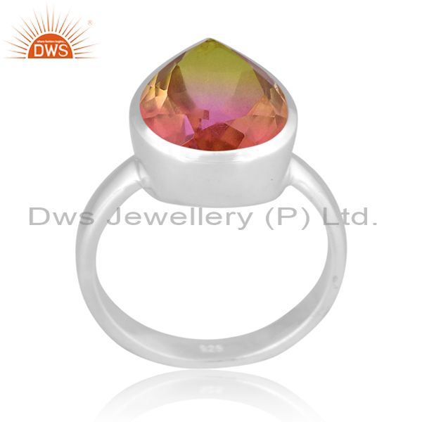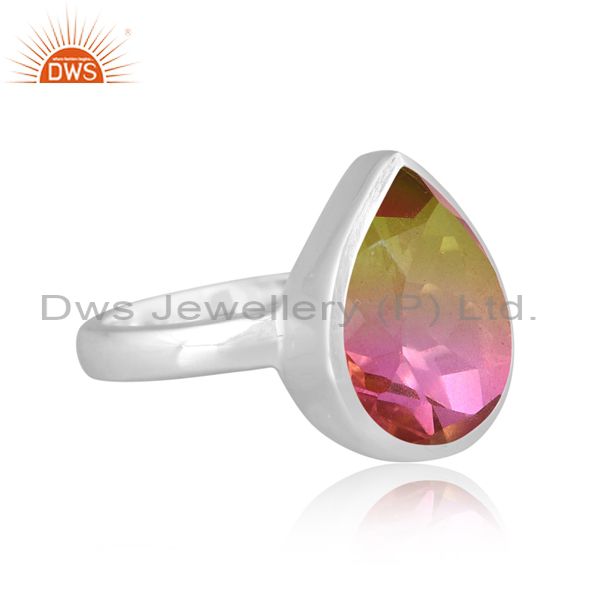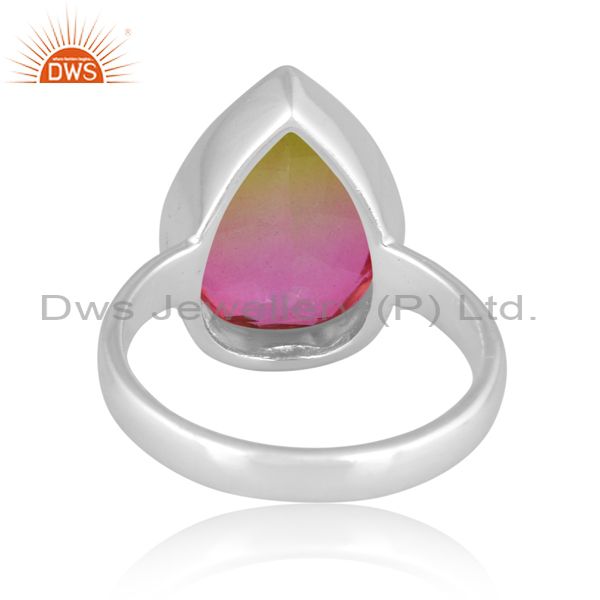 Bio Multitourmaline Doublet Quartz Set Fine 925 Silver Ring
