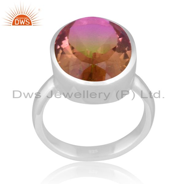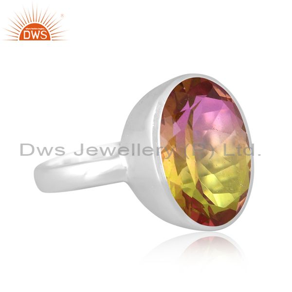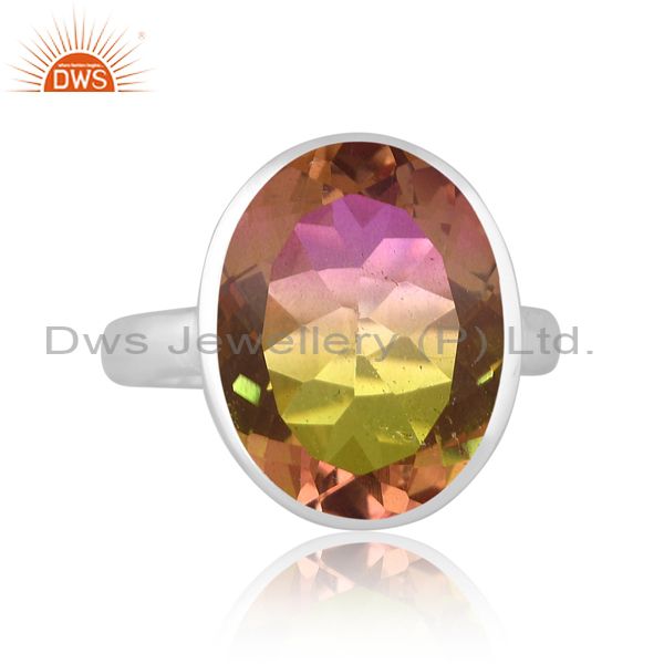 Bio Petro Tourmaline Doublet Quartz Fine Silver Design Ring