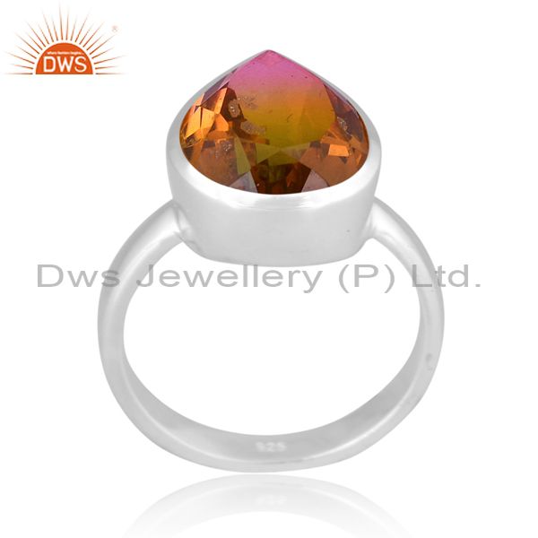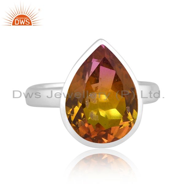 Bio Petro Tourmaline Doublet Quartz Set Fine 925 Silver Ring