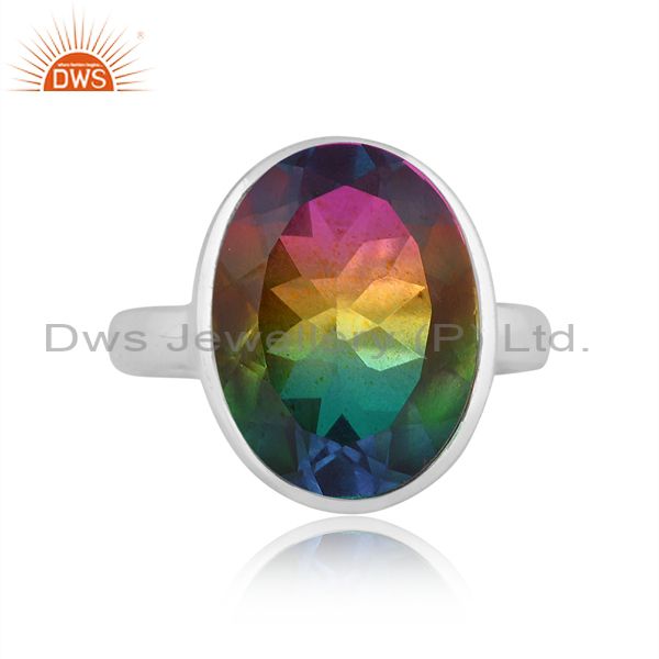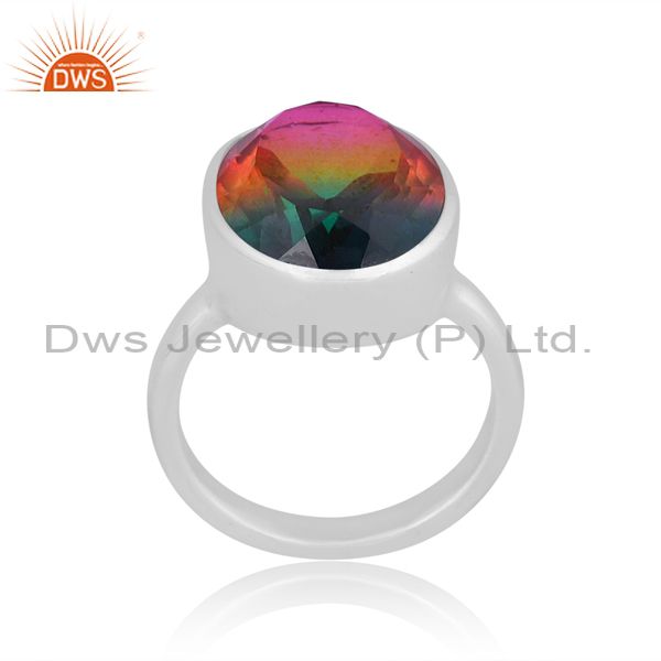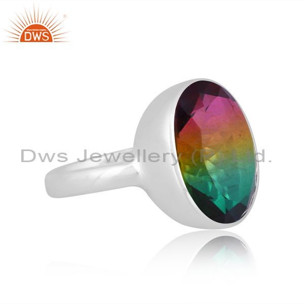 Bio Watermelon Doublet Quartz Fine 925 Silver Design Ring