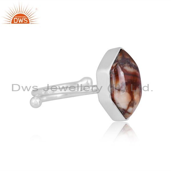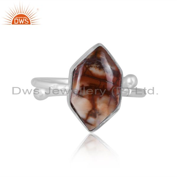 Birdeye Jasper Set Fine 925 Silver Handmade Hexagonal Ring