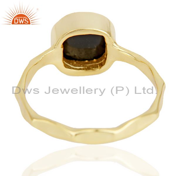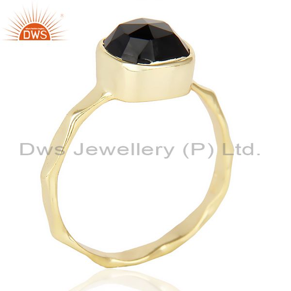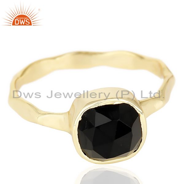 Black Onyx Cushion Shape Studded Gold Plated Hammered Ring In Solid Silver