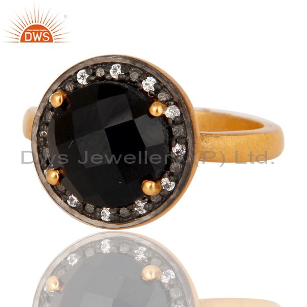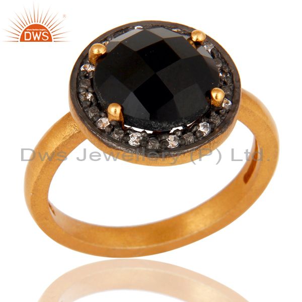 Black Onyx CZ Accent Sterling Silver Solitaire Promise Ring With Gold Plate
