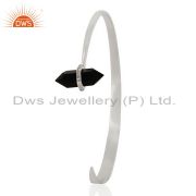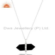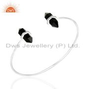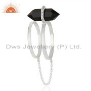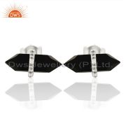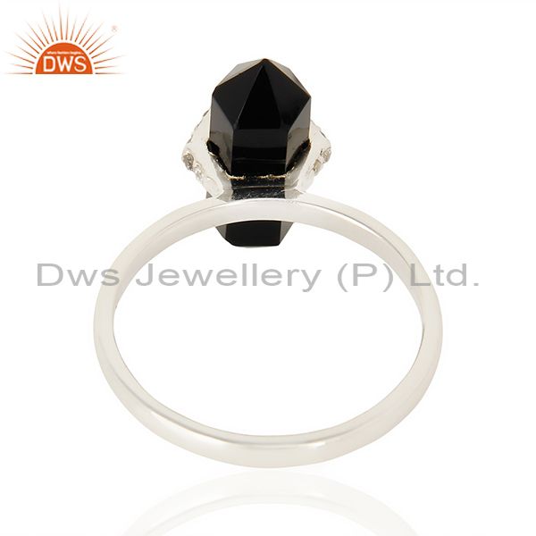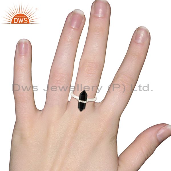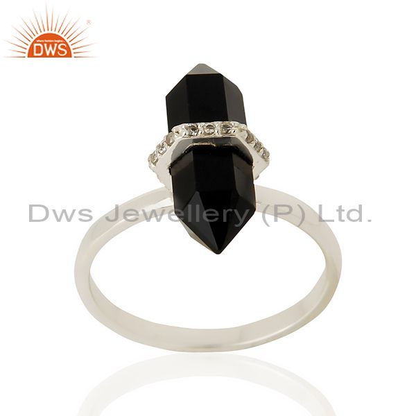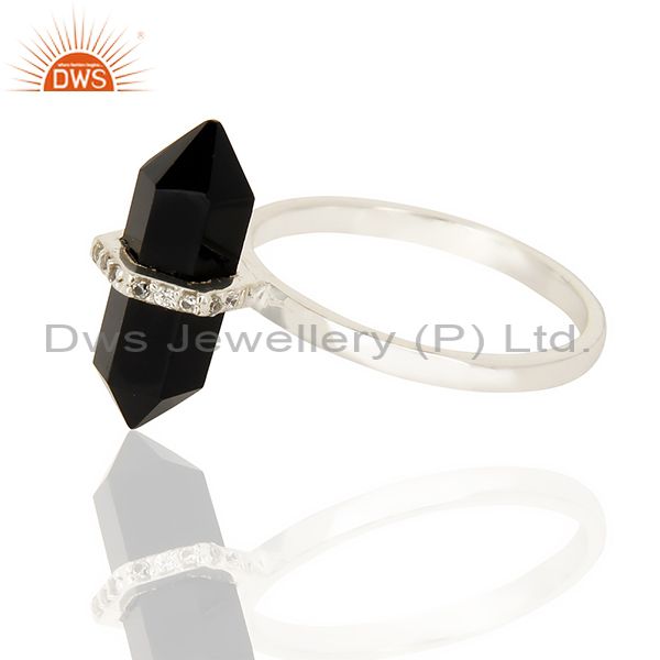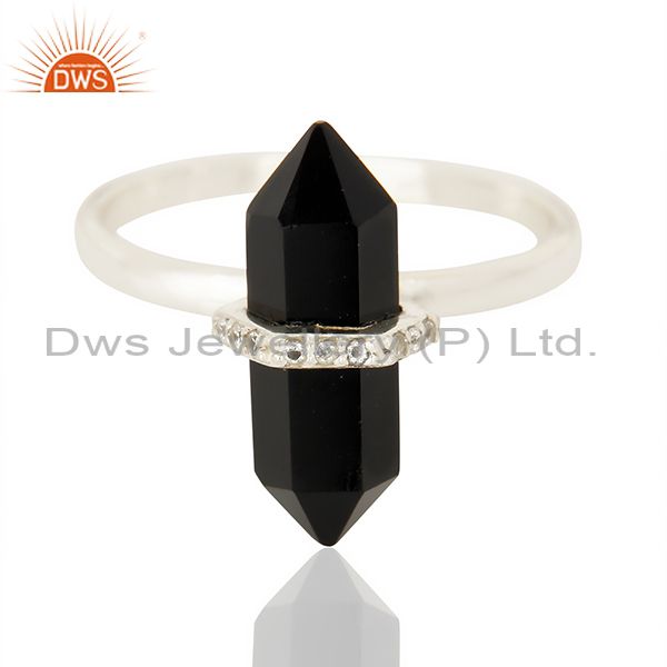 Black Onyx Cz Studded Double Terminated Pencil 92.5 Sterling Silver Ring