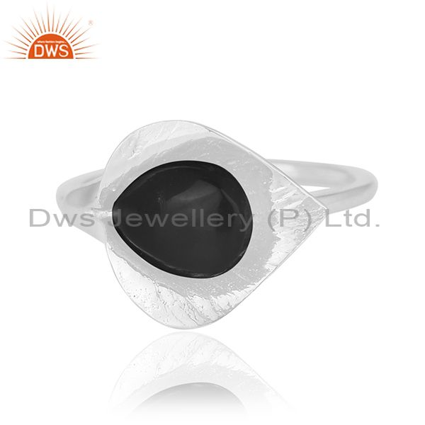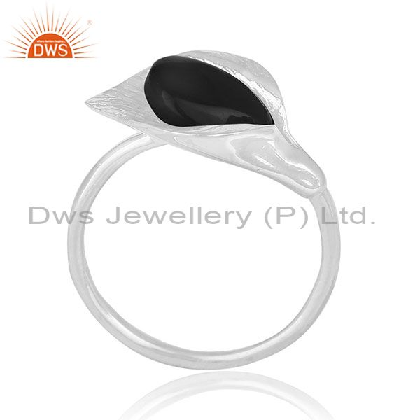 Black Onyx Gemstone 925 Silver Floral Design Ring Wholesale Suppliers