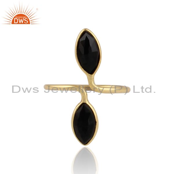 Black Onyx Gemstone Designer 18K Gold Plated 925 Silver Rings