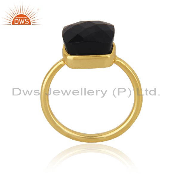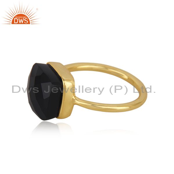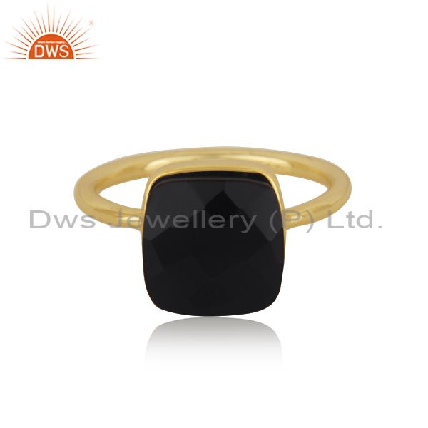 Black Onyx Gemstone Gold Plated 925 Silver Handmade Ring Manufacturer India