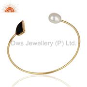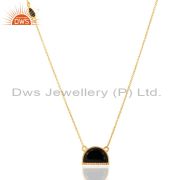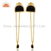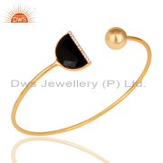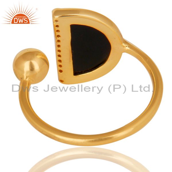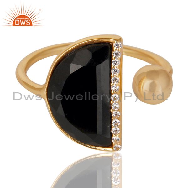 Black Onyx Half Moon Ring Cz Studded 14K Gold Plated Sterling Silver Ring