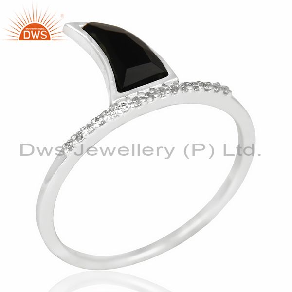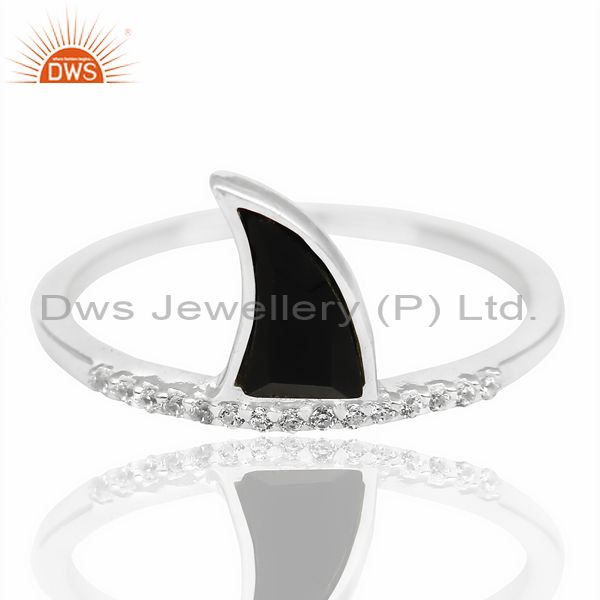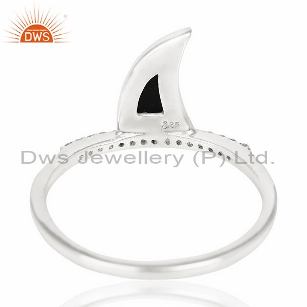 Black Onyx Horn Cz Studded Adjustable 92.5 Sterling Silver Ring