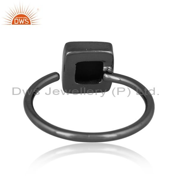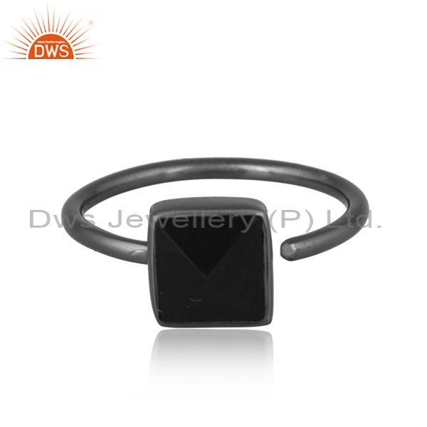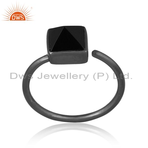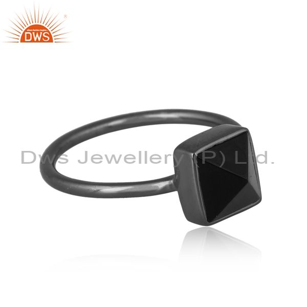 Black Onyx Pyramid Set Black On 925 Silver Gothic Style Ring