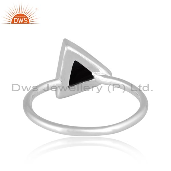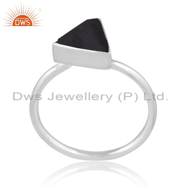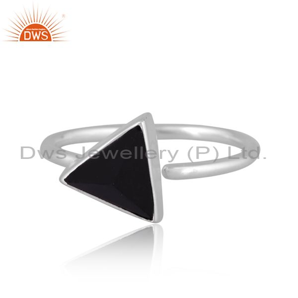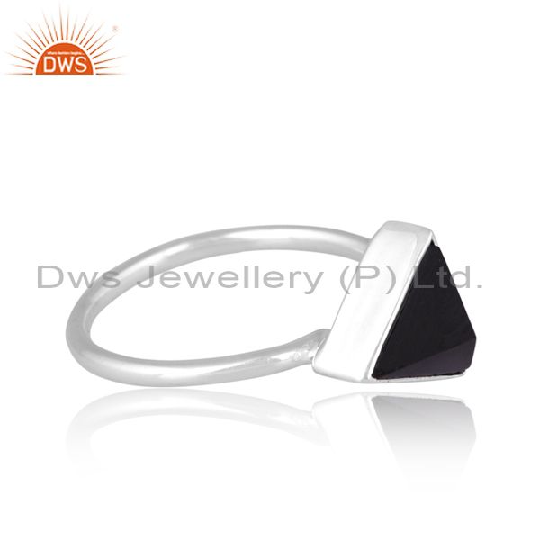 Black Onyx Pyramid Set Fine Sterling Silver Triangular Ring