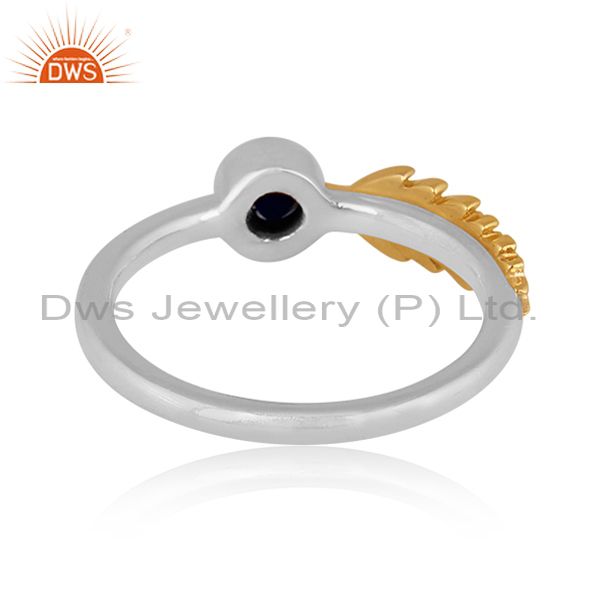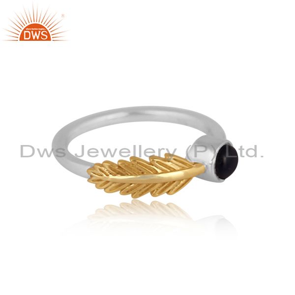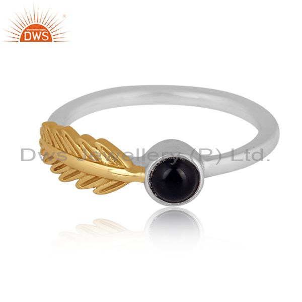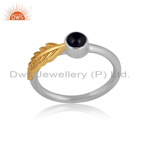 Black Onyx Set Gold On Fine Silver Classic Petal Design Ring
